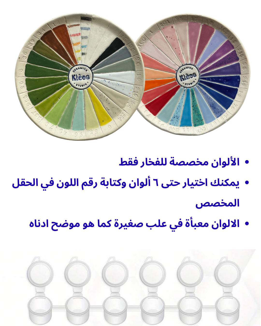 * السعر شامل للحرق ، بعد التلوين يمكنكم احضار القطع للمحل ليتم حرقها بالأفران المخصصة وتكون آمنة للشرب والأكل والتسخين